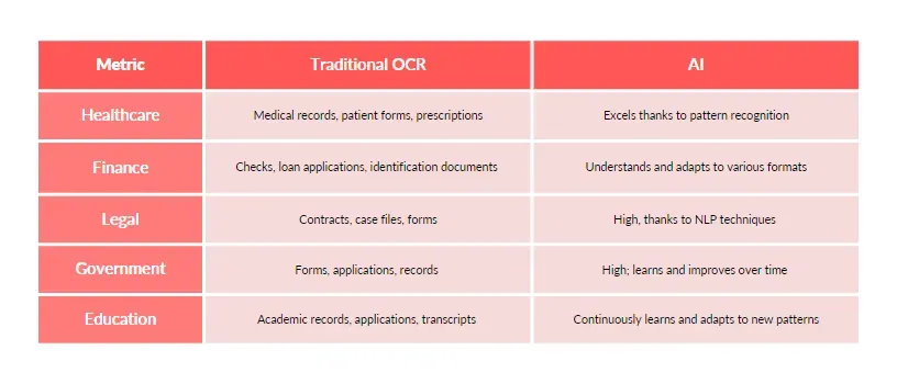 AI brings to the table advanced machine learning and deep learning techniques that can tackle the issues traditional OCR stumbles upon.